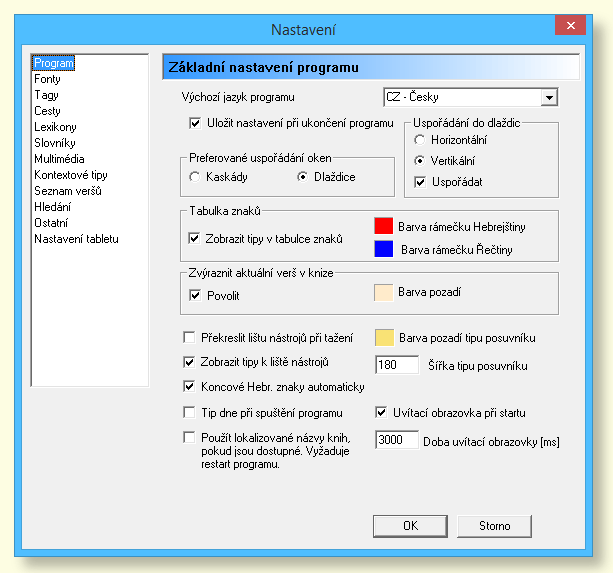 Ke změně barvy rámečku pro hebrejskou a řeckou tabulku - klikněte na barevný čtverec s aktuální barvou a vyberte barvu novou.