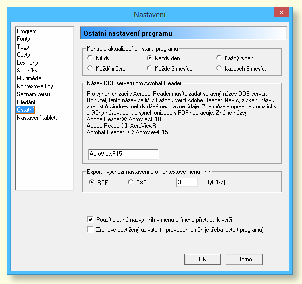 Pokud se tato chyba projeví (PDF soubor je otevřen, ale ne na očekávané stránce dle tagu), můžete nastavit název DDE serveru. Výchozí hodnota je nastavena na název získaný z registrů Windows. Pokud je třeba, můžete název ručně opravit. Předpokládá se, že máte Adobe Acrobat Reader správně nainstalovaný.