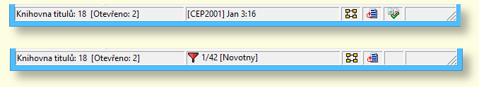 Ikona "filtru": pokud je ikona ČERVENÁ, tak je v aktuální okně použit filtr a jsou zobrazeny pouze filtrované položky. Pokud je ikona ŠEDÁ, tak filtr není použit a všechny položky jsou viditelné. Filtr se nuluje po stisku tlačítka "Obnovit" v aktuálním lexikonu, slovníku, spisu nebo poznámkách.