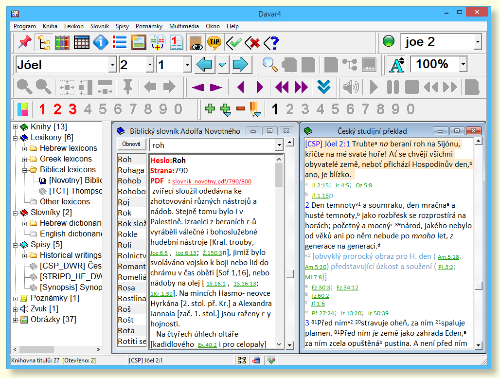 V oknech knih (např. Bible) můžete použít klepnutí dvěma prsty k posunu v historii vzad / vpřed. Je třeba klepnout v levé nebo pravé části okna (oblast lze nastavit).