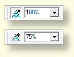 Ikona zvětšení v panelu nástrojů je použita pro rychlé nastavení zvětšení v okně. Toto zvětšení nemění velikost fontů, která se nastavuje v Dialogu nastavení fontů.